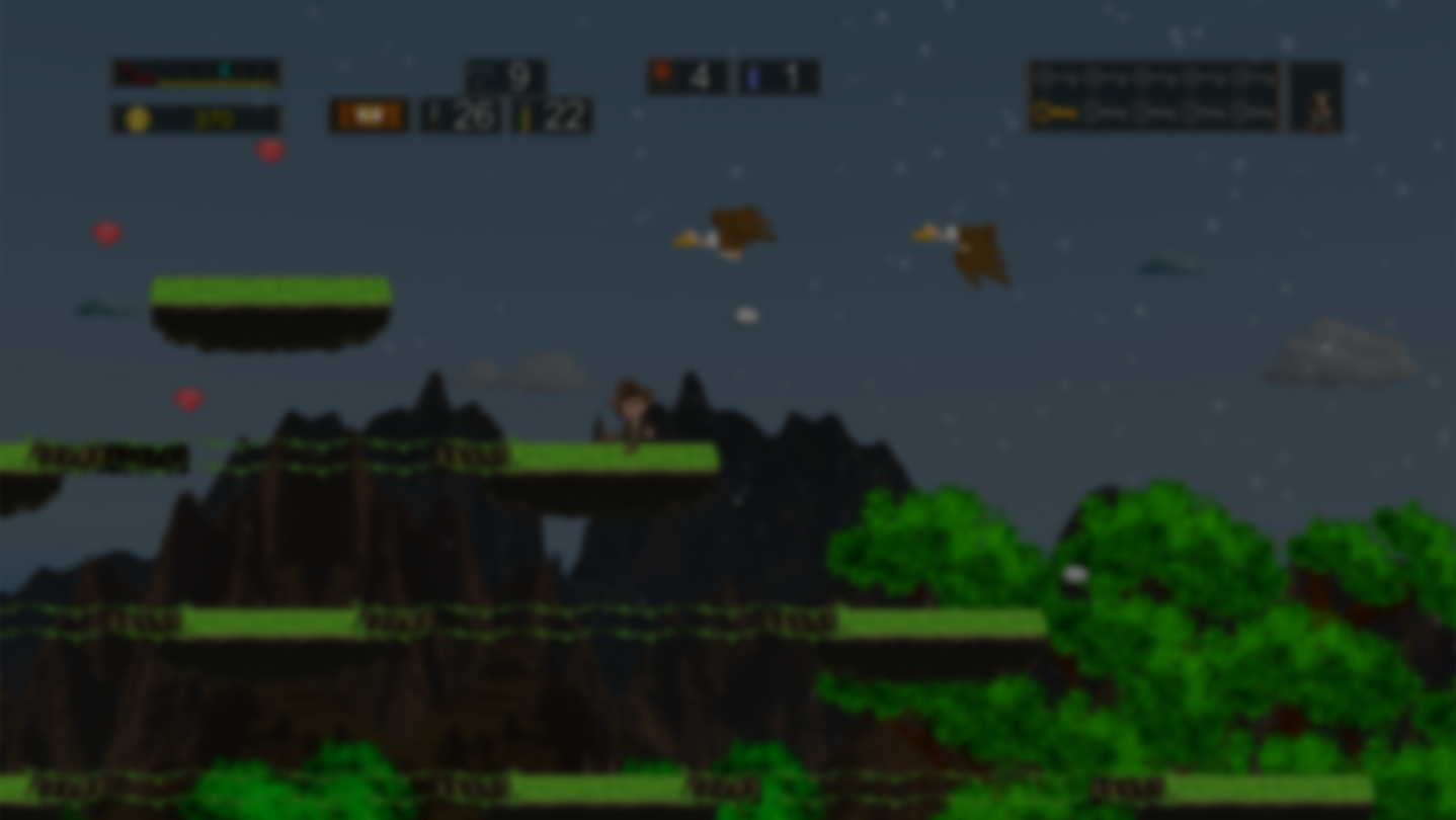 Search for the lost treasure of the infamous "Jaxton Max". Your quest for fortune and glory will not be easy however. This adventure is full of baddies aimed at stopping you dead in your tracks. Use knives to dig through walls, bullets to battle the baddies, grappling hooks to jump over long distances, oxygen tanks to breath under water and torches to see what lurks underground. Collect keys to get past locked doors and to open treasure chests. Avoid the quicksand, tar pits, spikes, fire pits, thumpers and other traps along the way. Few ever return from their expeditions into the deep jungles. So, if you are brave enough, the "Jungles of Maxtheria" awaits!