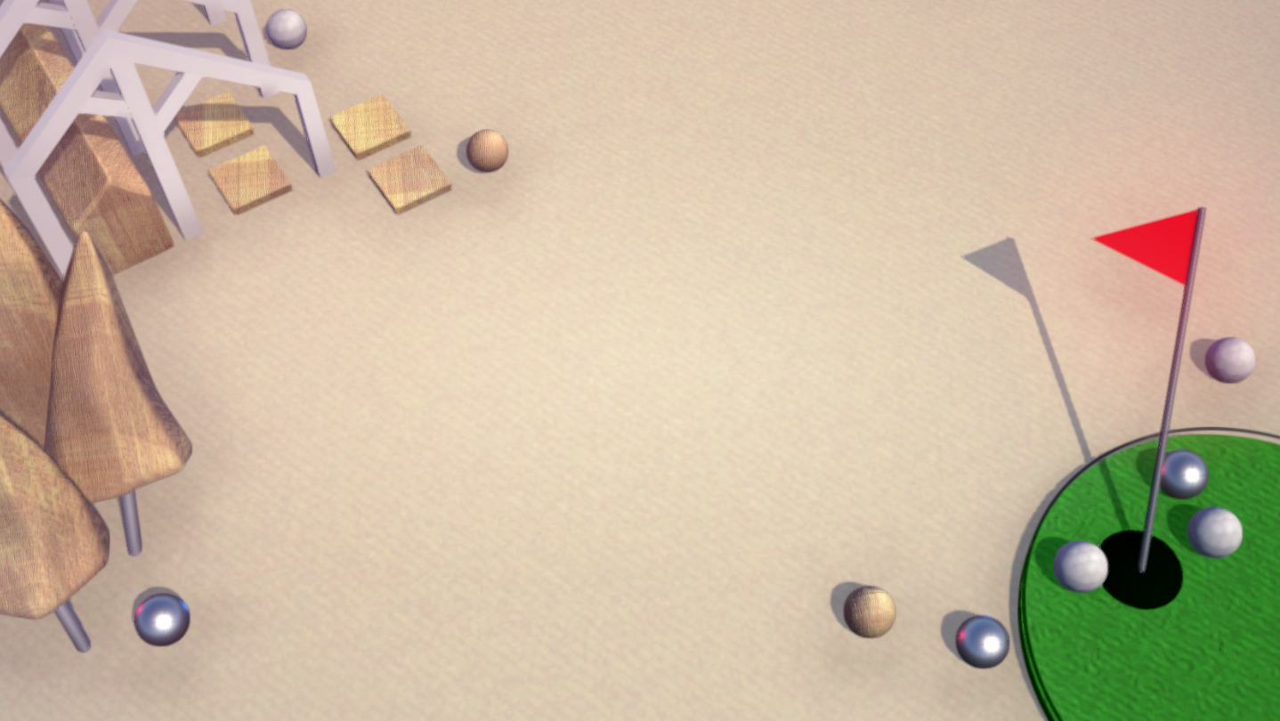 Spela dig genom procedurgenererade banor, håll dig under par och använd dina extraslag för att köpa uppgraderingar.