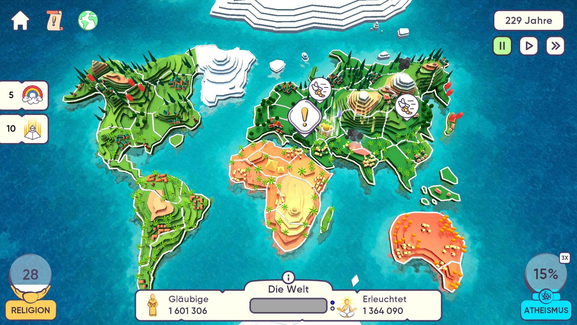 Move from one civilization to another. Discover the ancient world, and then discover the Middle Ages and the modern world! Can your religion resist the challenge of time and withstand all changes?