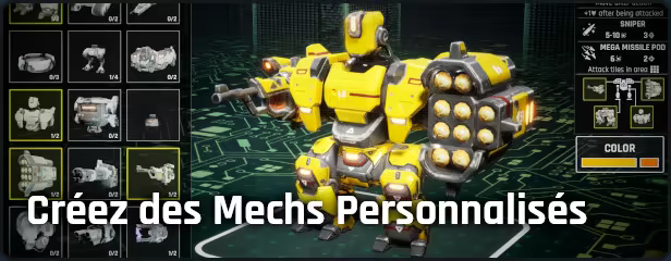 Vous souhaitez essayer de nouvelles tactiques, conceptions Mech ou stratégies sans risque ? En mode Simulation, vous pouvez choisir n'importe quelle pièce. Mettez au point vos manœuvres, testez des combinaisons uniques et affinez vos stratégies contre les Nuisibles.