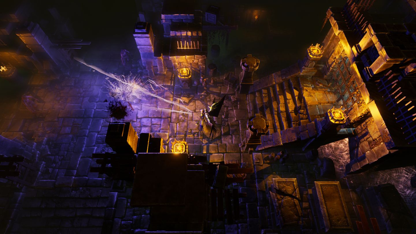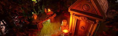 Environments range from mystical forests, dark dungeons, villages, caves and citadels. The goal was to create "pretty", yet dark and gloomy environments for players to explore. There is even a haunted cemetery with massive hoards of enemies to slash down.