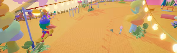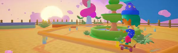 Magic Trick is a magical skateboarding adventure game, featuring expressive skating movement and trick combos, a totally explorable whimsical sunset world, and adorable townsfolk offering quests and companionship.