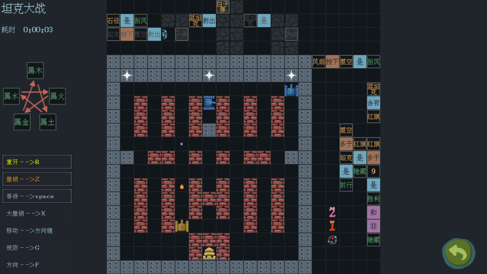 去年,一款惊人的解谜游戏 baba is you 上市了,我亦是粉丝之一,第一时间就入手通关了, 那时我就设想,如果能做一个即时制的同类型游戏,一定会非常有意思, 不仅能实现超多有意思的关卡,还能复现更多的游戏,如坦克大战,贪食蛇。