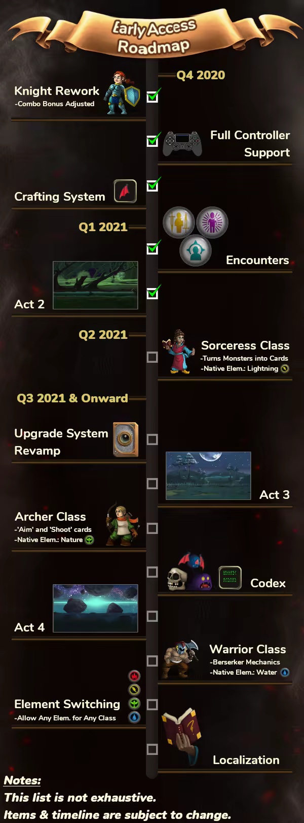 During Early Access, your feedback is valuable! The game is still being shaped into its final form, and there's room to add even more systems to the mix. For now, Act 1 and Act 2 are complete and the game includes all of the systems from the original vision -- systems from some of our favorite games, like combos and limits. Now, it's time to add even more substance to a solid foundation, and we hope you will join us during this great adventure!