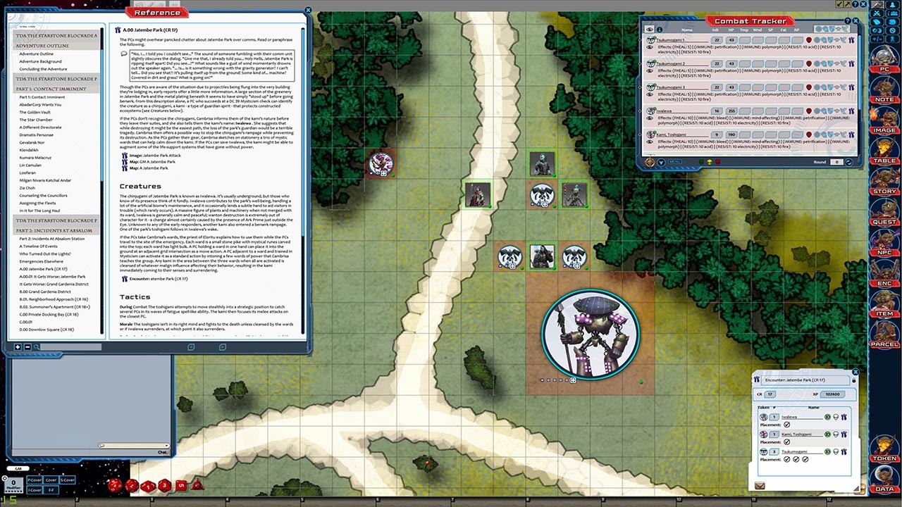 • Tokens for each encounter are all pre-placed in starting locations on the map. You can edit these on the fly.