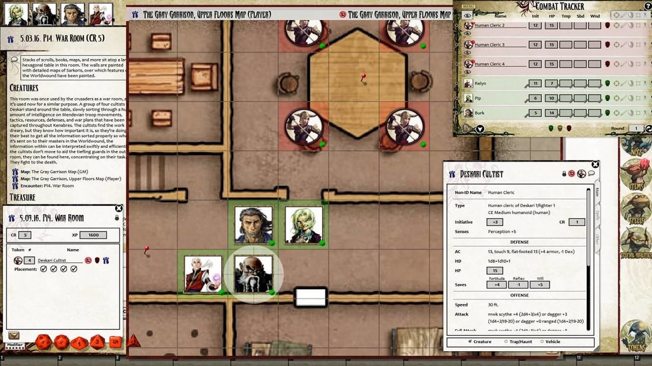 • Tokens for each encounter are all pre-placed in starting locations on the map. You can edit these on the fly.