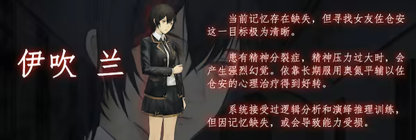 《回溯依存》是一款悬疑推理AVG。伊吹兰为寻找神秘失踪的女友奔波各地,却在某日发现自己不知何时来到了一间神秘的老旧学校。尽管伊吹兰只想尽快离开,但是突如其来的杀人事件和学校里接踵而至的谜团,使她不得不留在这里……