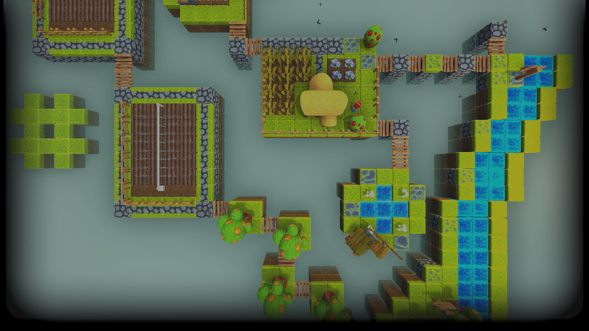 Swap the blocks of earth, stone, water, and others, like water channels and lawn sprinklers, so that all the arable soil receives the necessary water. Solve the challenge and feel the pleasure of watching the plants instantly grow and bear fruit.