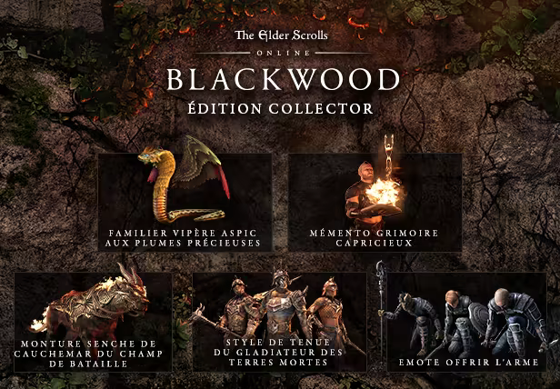 Achetez la Collection Collector The Elder Scrolls Online: Blackwood pour recevoir les bonus exclusifs de l'édition Collector, comprenant :