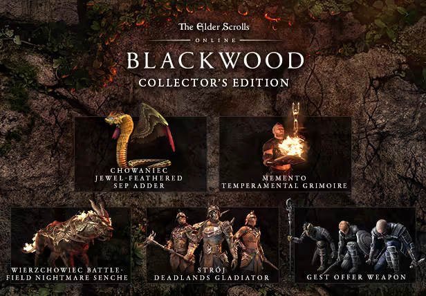 Dla nowych graczy w ESO: Kolekcja The Elder Scrolls Online: Blackwood – zawiera podstawową wersję gry, rozdział Blackwood z roku 2021 oraz WSZYSTKIE poprzednie Rozdziały (Morrowind, Summerset, Elsweyr i Greymoor)