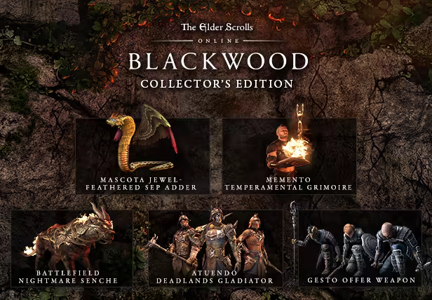 Adquiere The Elder Scrolls Online Collection: Blackwood CE, y recibe contenido extra de la Collector's Edition en el juego, que incluye: