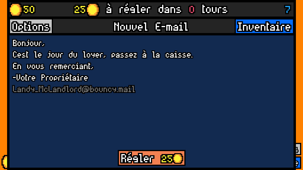 Votre propriétaire martèle à votre porte. Vous n’avez qu’un unique sou en poche. Vous insérez la pièce dans la machine à sous… Et… JACKPOT ! La Chance vous sourit, Locataire !