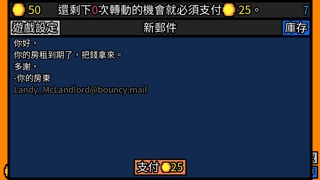 你的房東正在敲門。你手頭上只剩一枚硬幣。你把它投入老虎機…結果…中了頭獎!今晚,租戶有財運!