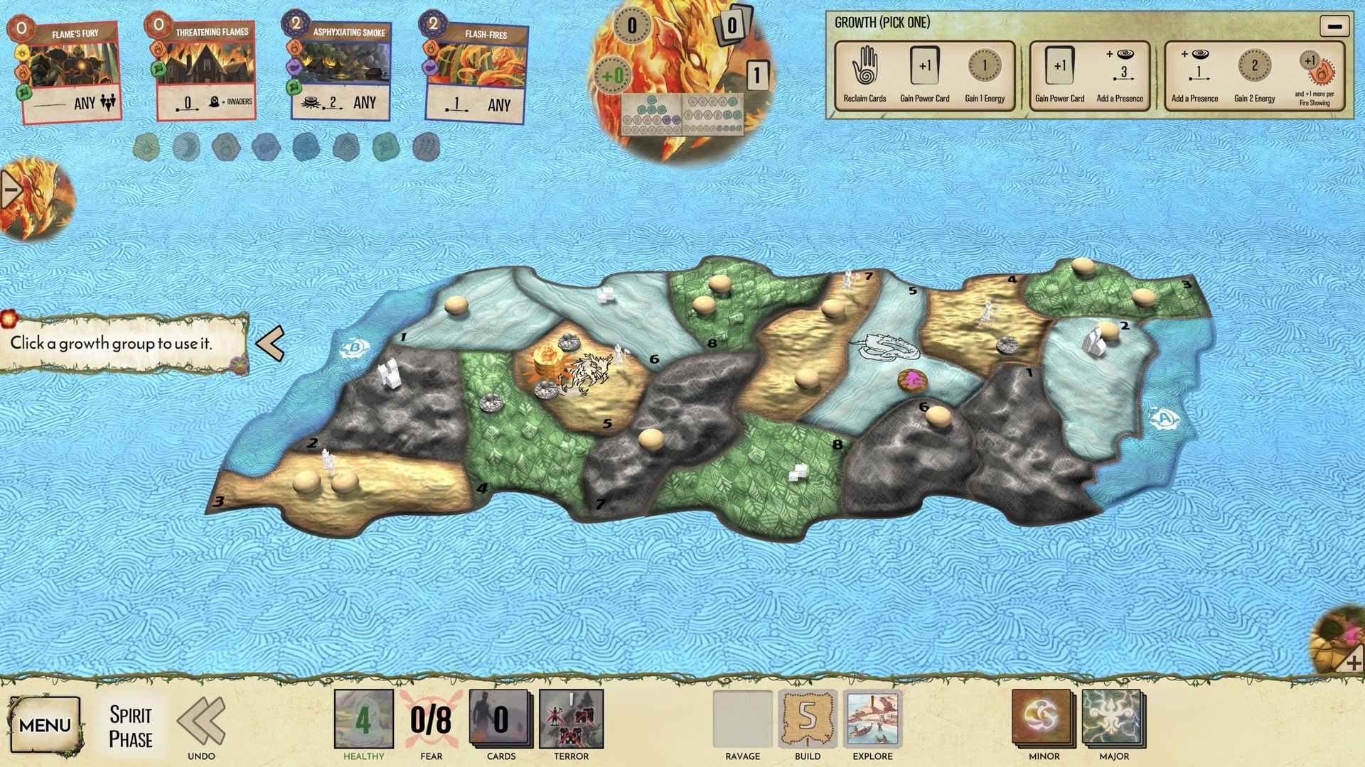 The Serpent Slumbering Beneath the Island is a high-complexity spirit. If Ocean's big limitation is "coastal" and Wildfire's is "blight", Serpent's is "waking up": it's a very slow spirit, limited in its development, but with the prospect of great power if it wakes up fully.