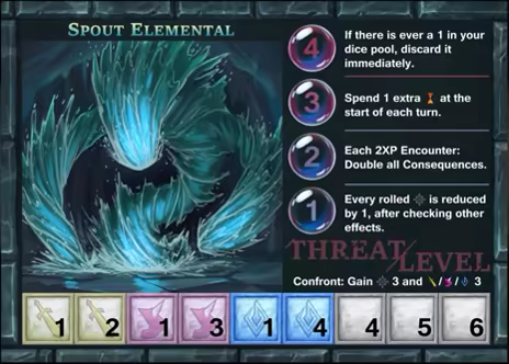 Fiends have their own challenge boxes that can be filled at any time, even over multiple encounters. By filling all the boxes you can confront the Fiend, reduce its terrible effects, and claim a bonus! However, the Fiend won't give up so easily - the Threat Level rises again whenever you descend.
