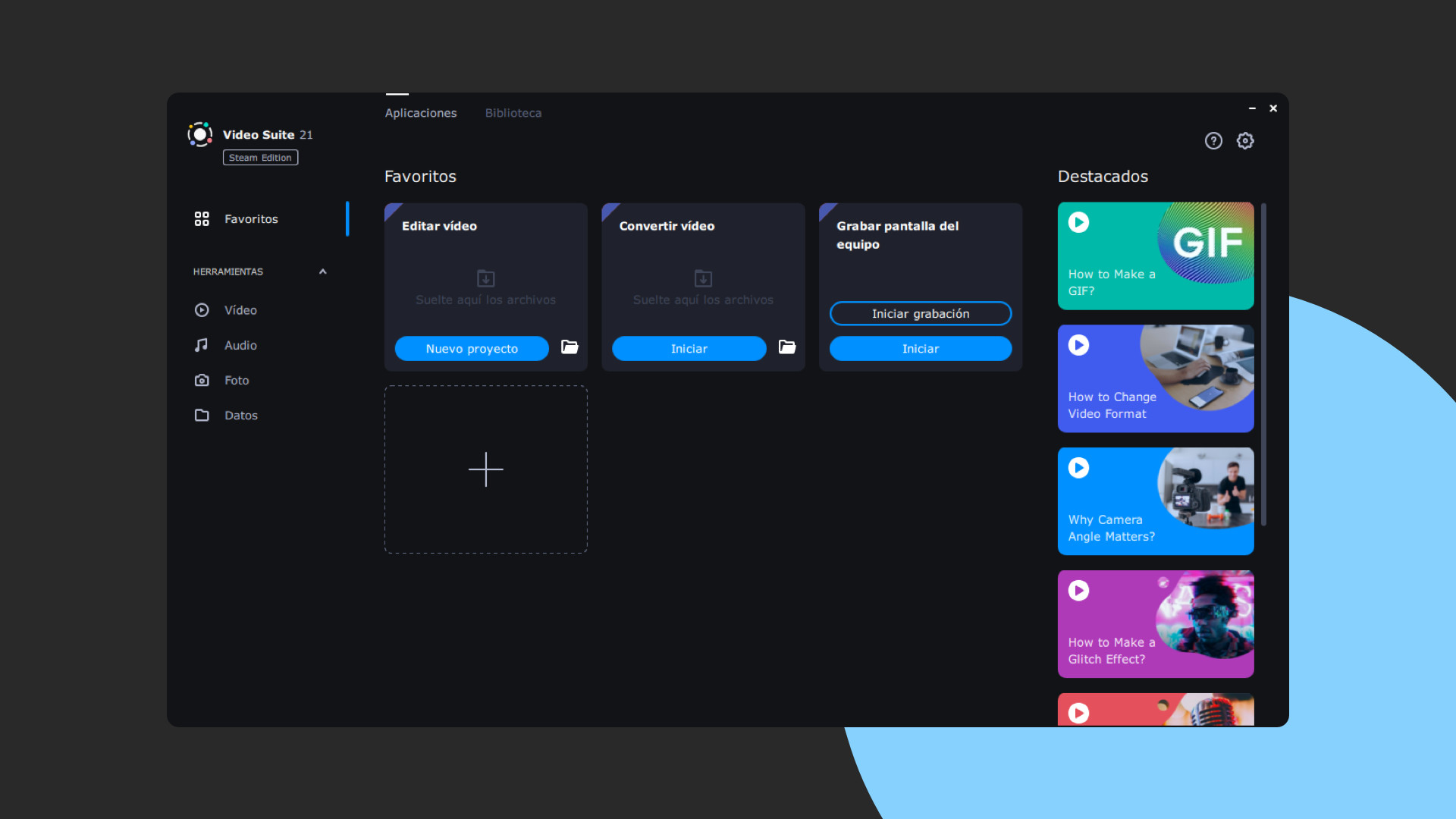 Movavi Video Suite es la manera perfecta de obtener todas las herramientas que necesitas en una sola aplicación. Crea tus propias historias de vídeo, convierte juegos y otras imágenes entre 180 formatos diferentes al instante, captura la actividad de la pantalla, reproduce vídeos y mucho más.