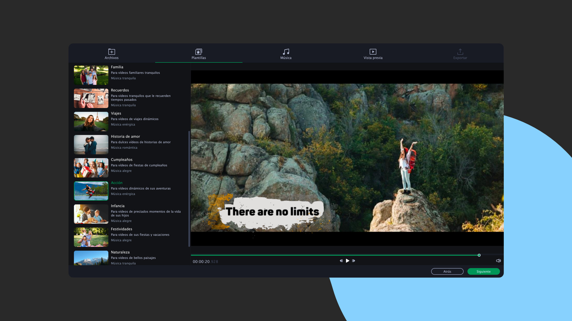 • Automatice la creación de vídeos con el Asistente para montajes: tan solo agregue sus clips y disfrute el resultado