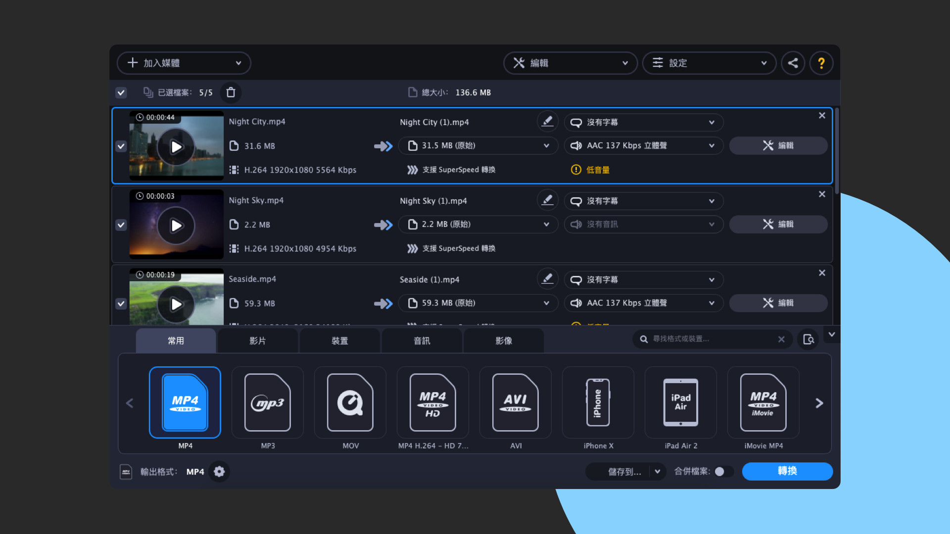 多虧了 180 多種支援的格式,以及 200 多種可用的行動預設組合,保證在任何平台或裝置上都能觀看您的遊戲影片。您可以壓縮大型影片以節省硬碟空間,並且在 YouTube、Vimeo 和其他影片分享網站上分享。SuperSpeed 模式可以確保快速而無損的轉換,更相容於其他類型的硬體加速:Intel HD Graphics、AMD、NVIDIA NVENC 和 CUDA。使用內建編輯器來完善檔案,包括以高精度修剪片段、調整顏色、穩定鏡頭、嵌入字幕、提高音訊品質等,然後再進行轉換。