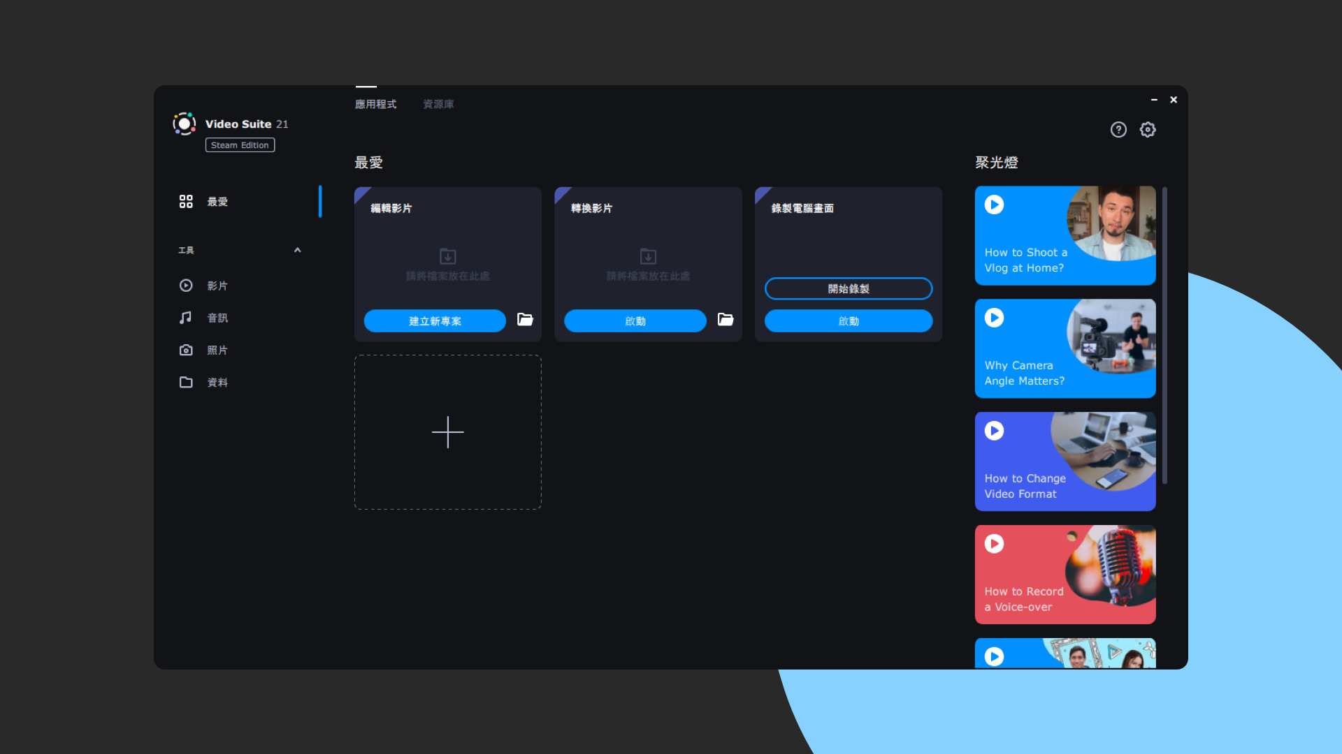 Movavi Video Suite 在單一應用程式中提供您所需的一切工具,是您的理想之選。建立您自己的影片動態,在 180 種不同格式間快速轉換錄製的遊戲,以及其他鏡頭、擷取螢幕活動,播放影片等。
