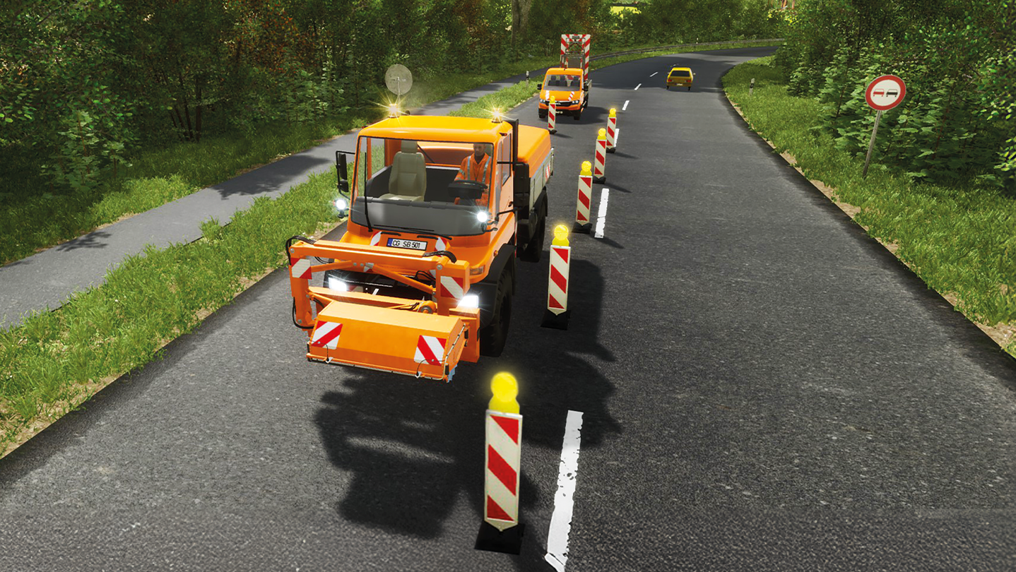 • Realistic tasks such as securing the work area, removing safety barriers, placing road markings, trimming trees, cleaning guard rails, cleaning roadsides, repairing roads, placing traffic signs, placing guard rails, placing delineators and much more