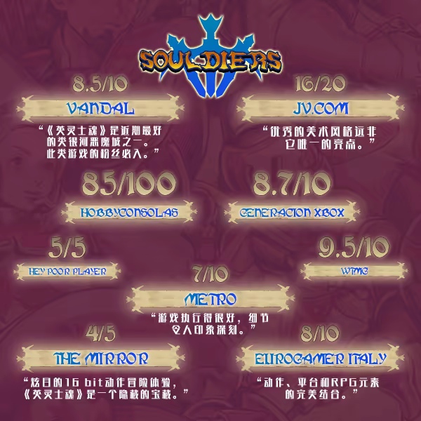 “《英灵士魂》是近期最好的类银河恶魔城游戏之一,此类游戏的粉丝必入。”