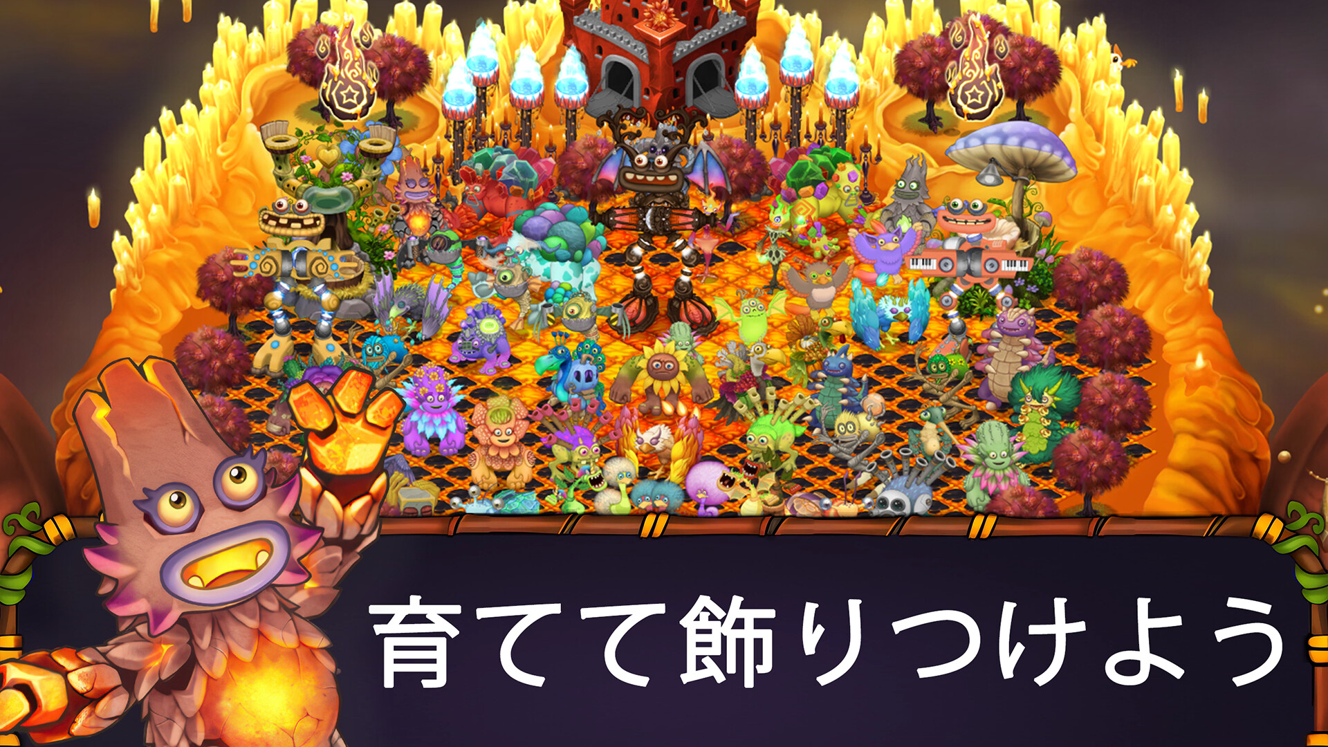 モンスターたちをブリーディング・育成し、モンスターたちの奏でる歌声に耳を傾けよう! 島を歌うモンスターたちでいっぱいにしよう。かわいいモンスターたちをブリーディング・アップグレードしていくたびに、島の音楽が変化していく。ユニークなデコレーションをデザイン・構築して自分だけの世界を作り上げ、フレンドと共有しよう!モンスターワールドにしかない最高のファンタジー世界が、すべて君の手に!