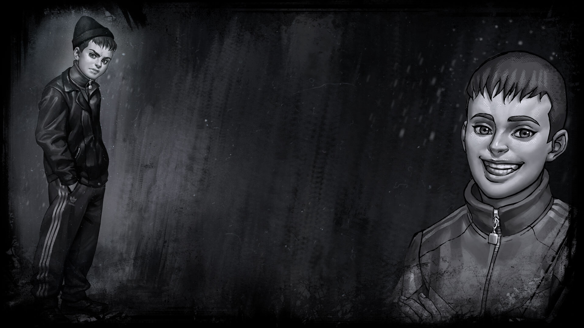 ✔ Hand-drawn, black-and-white art style