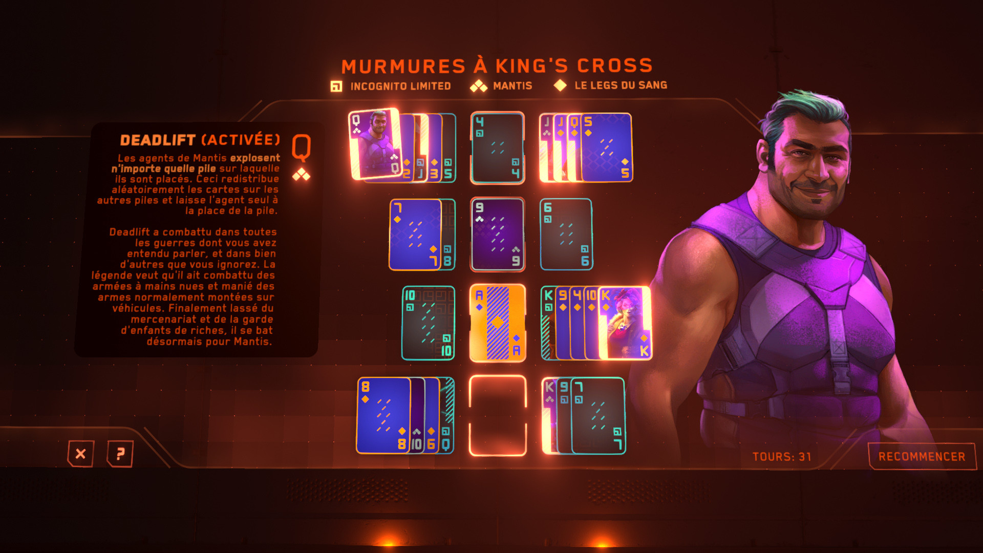 Nous avons besoin de votre aide, Maître espion. Plongez dans un futur proche rempli d'agents secrets et vainquez votre Némésis dans cette version survitaminée du solitaire classique. Une précision spécialement conçue pour des parties d'espionnage rejouables à l'infini.