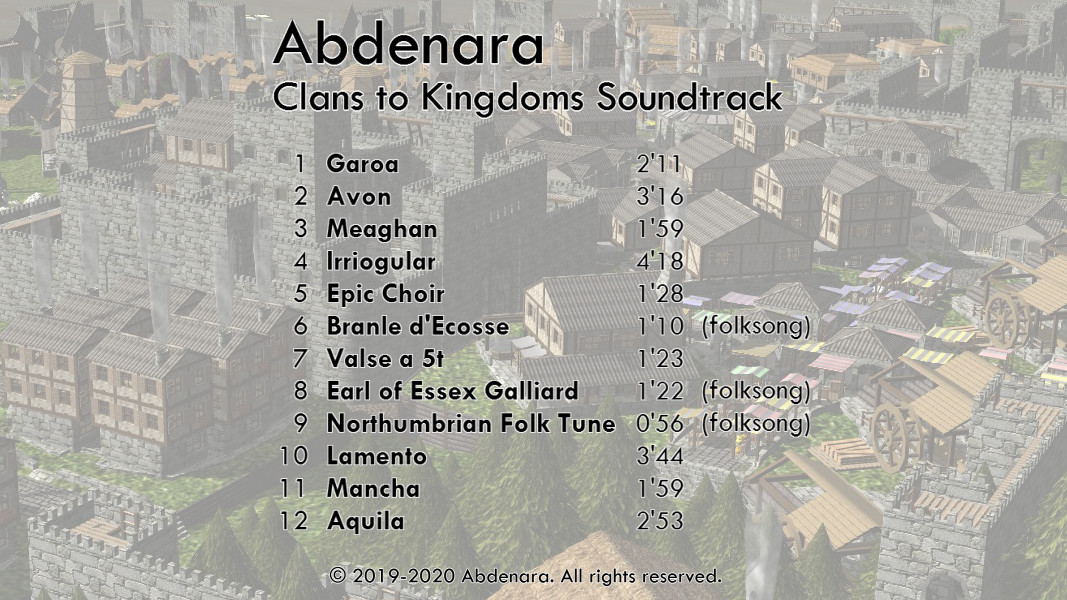The Soundtrack files are installed to the folder 'Clans to Kingdoms Soundtrack'.