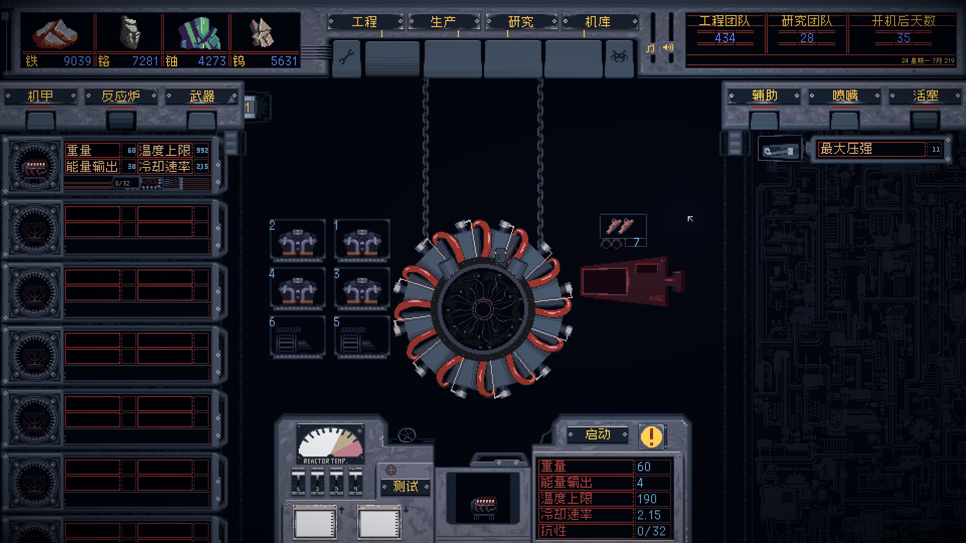 从反应炉开始,选择活塞和喷嘴,提高其能量输出,再加入辅助模块,控制核心温度。你要考虑各种因素,包括部署环境的温度,过热会导致机甲在战斗中停机,这可不是什么好事。