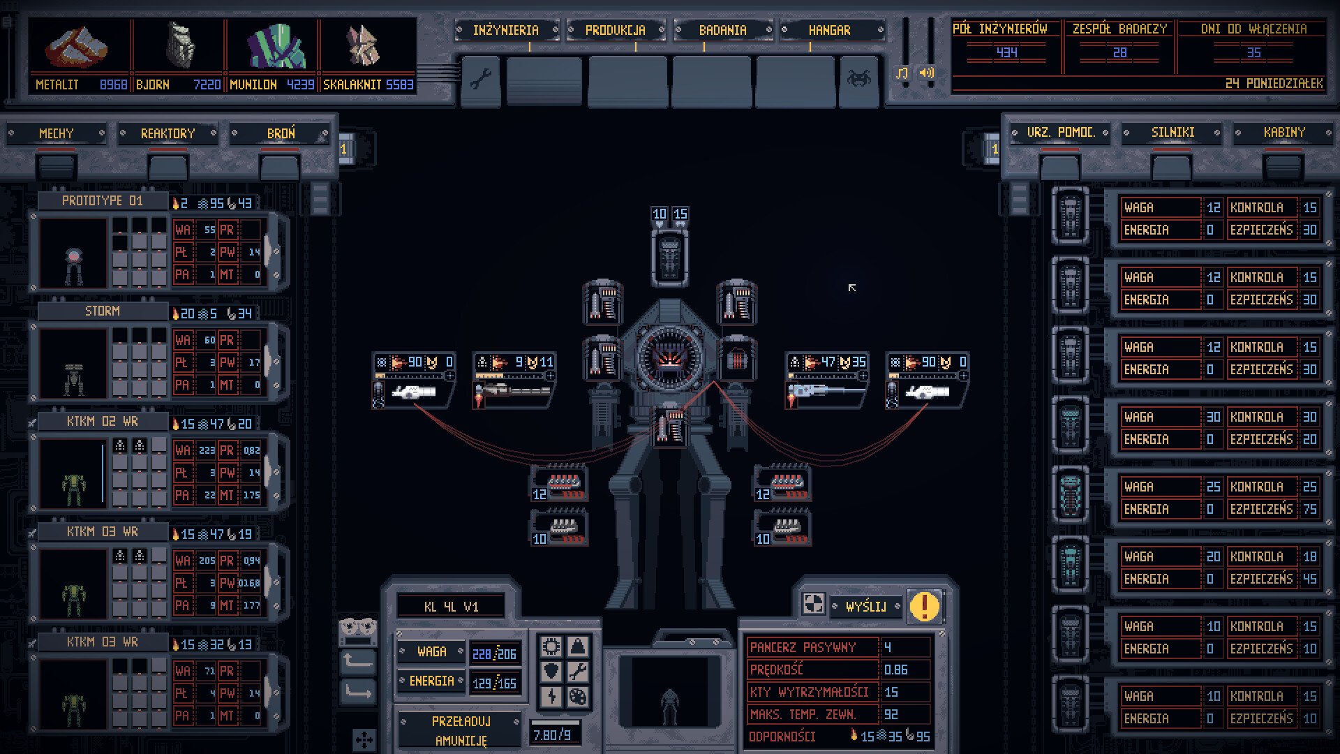 Zaczynasz od reaktora – zwiększ jego moc wyjściową, wybierając tłoki i iniektory, dodając przy tym podzespoły pomocnicze, które utrzymują niską temperaturę rdzenia. Weź pod uwagę wszystkie czynniki, takie jak temperatura środowiska, w którym będzie odbywać się misja. Przegrzanie może spowodować wyłączenie systemów podczas bitwy, a tego lepiej unikać!