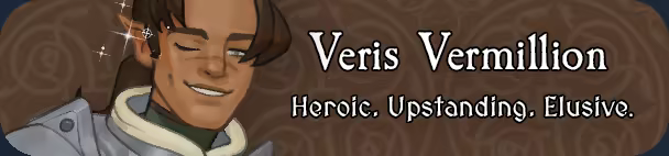 Veris is high-ranking member of the Golden branch of the Knights of Faunestra, Veris is known as quite the upstanding hero. Strangely though, whenever it's time to work, Veris tends to up and disappear! I wonder why...?