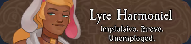 Lyre's strong sense of justice and habit of acting before she thinks has often led to her getting fired. Strong-hearted, impulsive, and eager to learn, she's also smart, kind, or brave depending on your choices!
