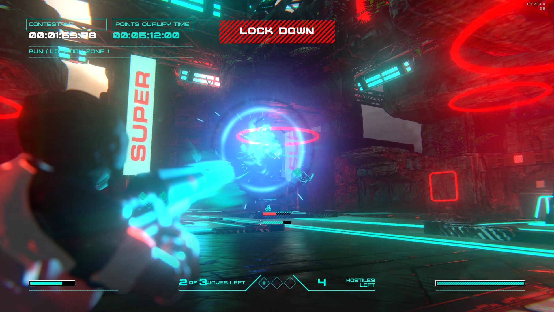 Feel the white, hot, heat of the arena as you run this time trial bullet hell gauntlet. Scoring points, earning cash, battling up the leaderboard in this future sport. It's time to show the world what you're made of and become the ultimate champion of Super Laser Fury!