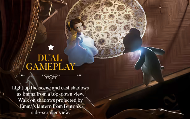 Tandem : A Tale of Shadows redefines the puzzle platformer genre with a unique gameplay and exceptional aesthetics. Help Emma and the teddy bear Fenton solve the mystery of the disappearance of the famous magician Thomas Kane.