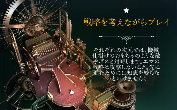 Tandem:影の物語 は、ティム・バートン、ジュール・ヴェルヌ、コナン・ドイルから着想を得た、5つの美麗なヴィクトリア時代風の世界です。明暗法で描かれた次元から生還したいならば、エマのトップダウンビューとフェントンのサイドスクロールビューを注意深く切り替えなければいけません。