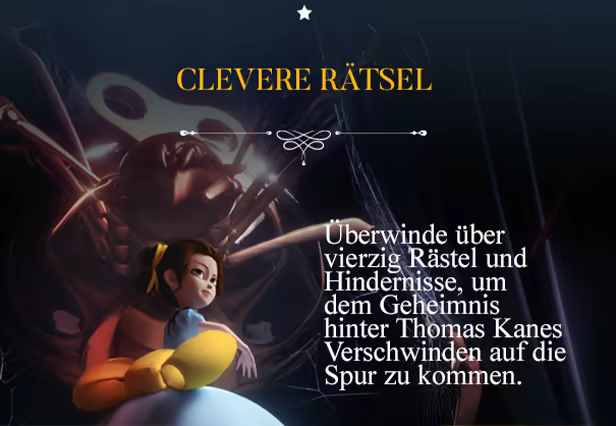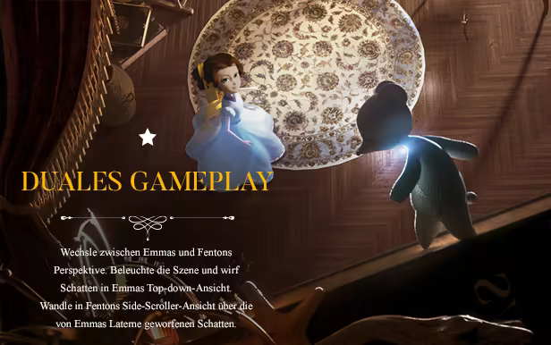 Tandem: A Tale of Shadows definiert das Puzzle-Plattformer-Genre mit einem einzigartigen Gameplay und einer außergewöhnlichen Ästhetik neu. Helfen Sie Emma und dem Teddybär Fenton, das Geheimnis um das Verschwinden des berühmten Magiers Thomas Kane zu lösen.