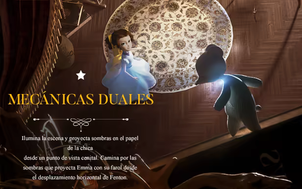 Tandem: A Tale of Shadows redefine el género de puzles y plataformas con mecánicas de desplazamiento y vistas únicas y una estética excepcional. Ayuda a Emma y a Fenton, el oso de peluche, a resolver el misterio de la desaparición de Thomas Kane, hijo de una famosa pareja de ilusionistas.