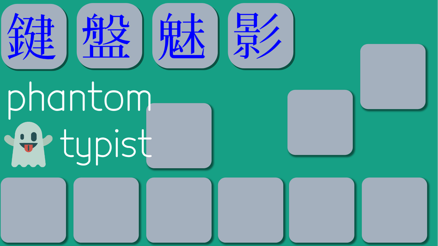 Phantom typist is the typing arcade game which you can learn and improve typing skill of Chinese characters.