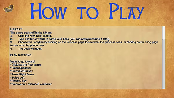 When you begin, you will be asked to choose the story from the princess’s or the frog’s point of view. You can play both storylines as often as you like. Each version is saved automatically.
