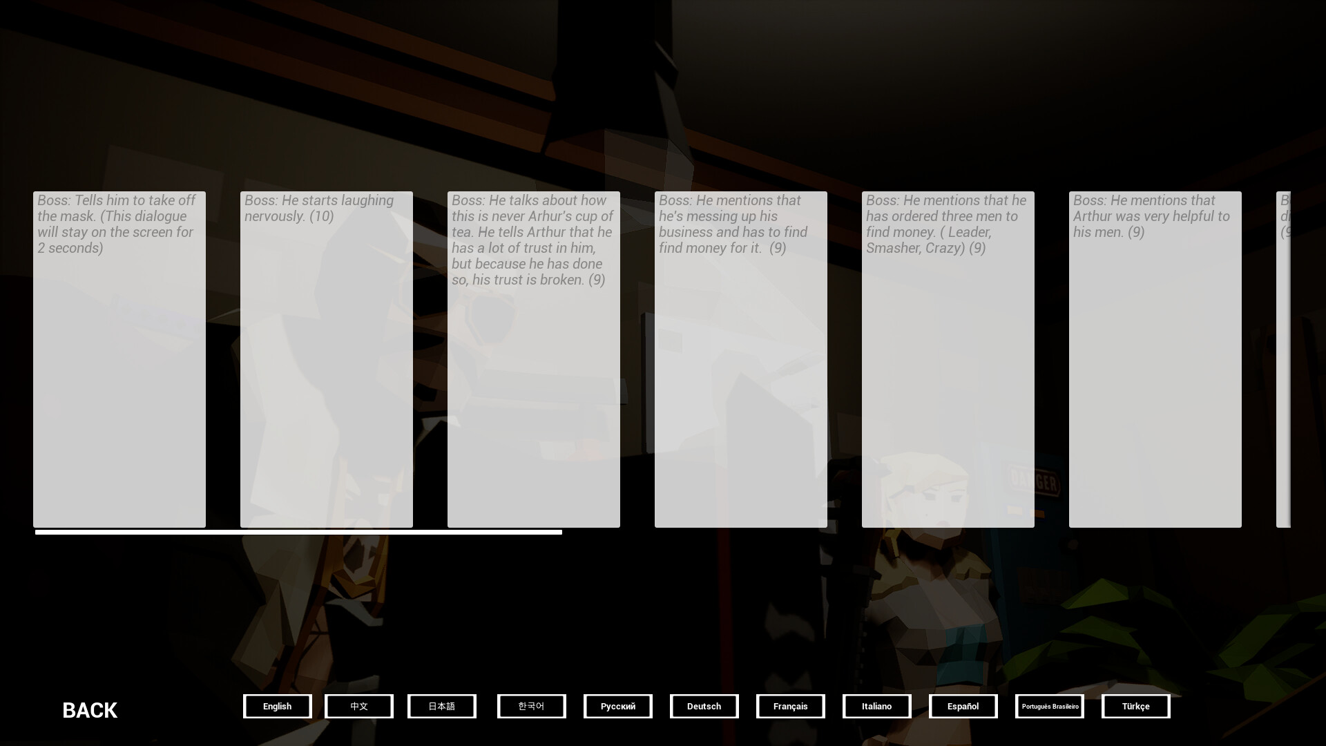 Dubbing Time is a game in which characters from 8 different parts are voiced and we wrote the scenario consisting of 8 parts. There are 4 themes in the game: Western, Heist, Gang, Cyber. And each theme has 2 parts. The stories of these episodes are linked.