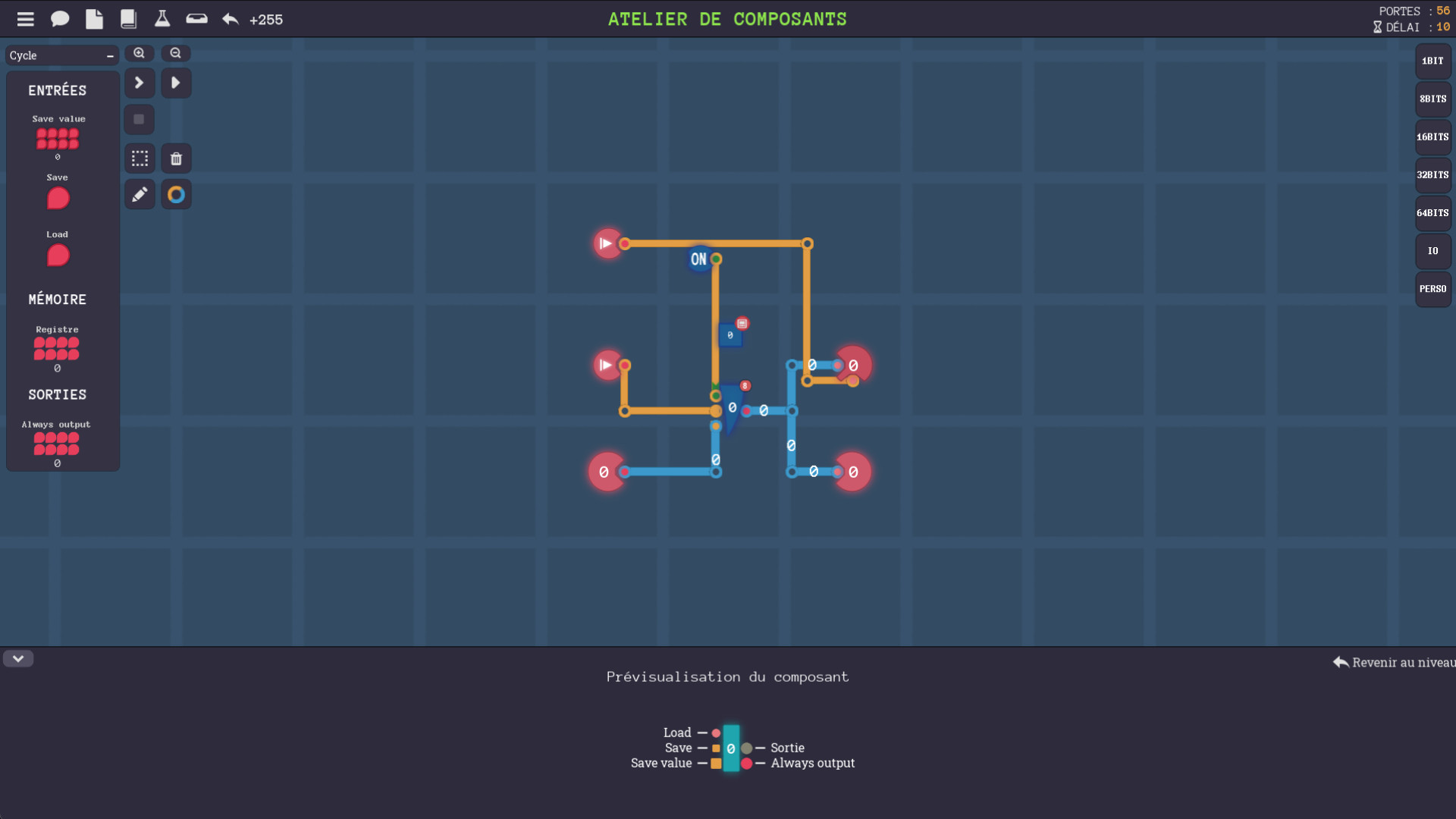 Le jeu est construit sur un puissant simulateur, qui te donne une liberté totale dans la façon de résoudre les niveaux ou de créer tes propres ordinateurs. Connecte des écrans, des minuteries, des composants pour le son, l'interface clavier et le réseau pour créer ce que tu veux. Tu pourras même concevoir un langage d'assemblage spécifique pour ton ordinateur.