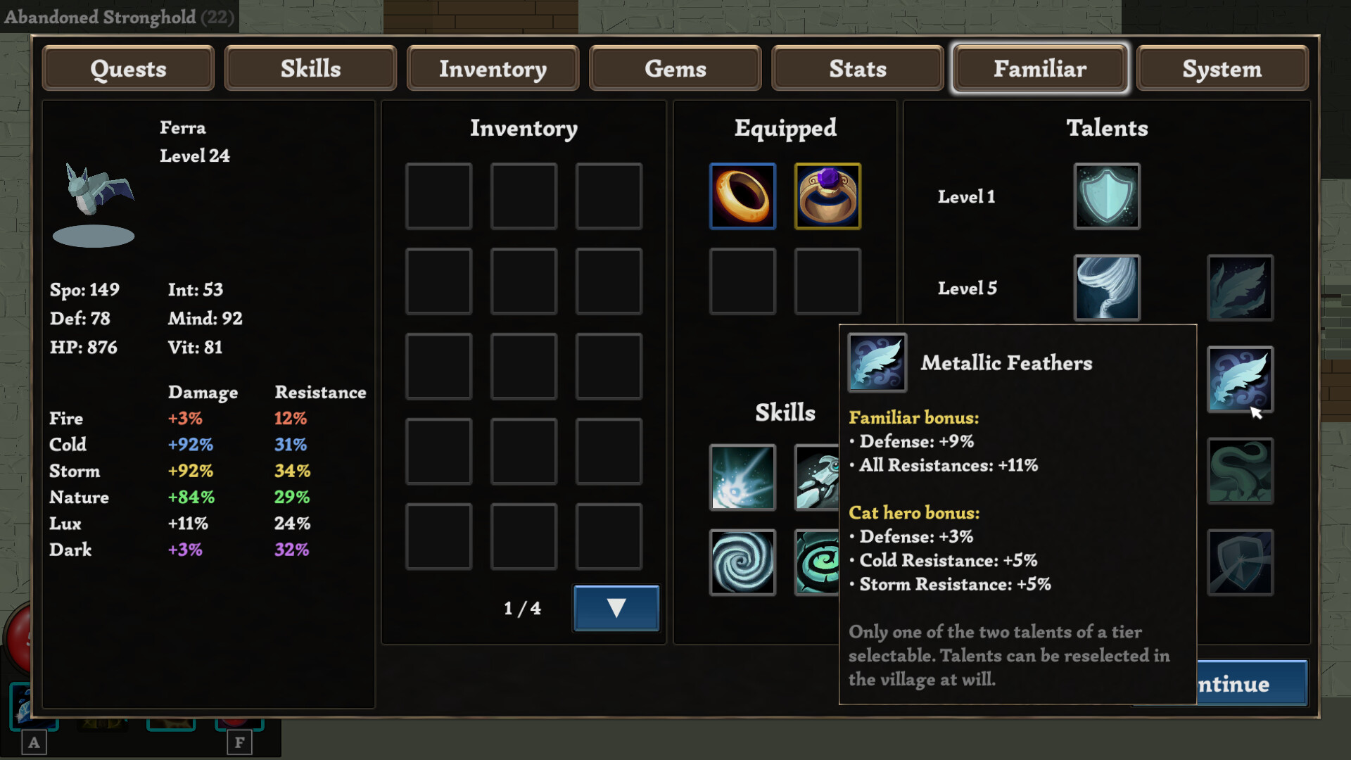 Enjoy a multitude of ways to increase the power of your cat hero. Manage two skill trees, loot items, craft items, enchant items, refine gems, find permanent stat bonuses and more.