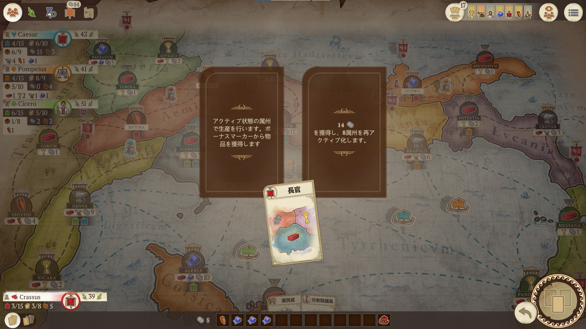 コンコルディア: デジタルエディションは、常にトップ20の評価を得ている戦略的ボードゲームを忠実に再現しています。事前に計画し、毎ターンごとに重要な決定を行っていきます。常にトレードオフの準備をしておきましょう - あなたのアクションが、ほかのプレイヤーだけでなく、あなた自身にも大きな利益をもたらすのです。