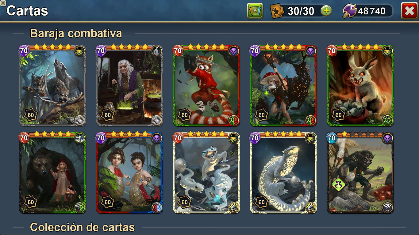 * Enfoca con razón la formación de la baraja: más de 200 cartas bellíssimas, cada de ellas tiene sus capacidades únicas. ¡Desarrolla y refuerza la efectividad de tus barajas!
