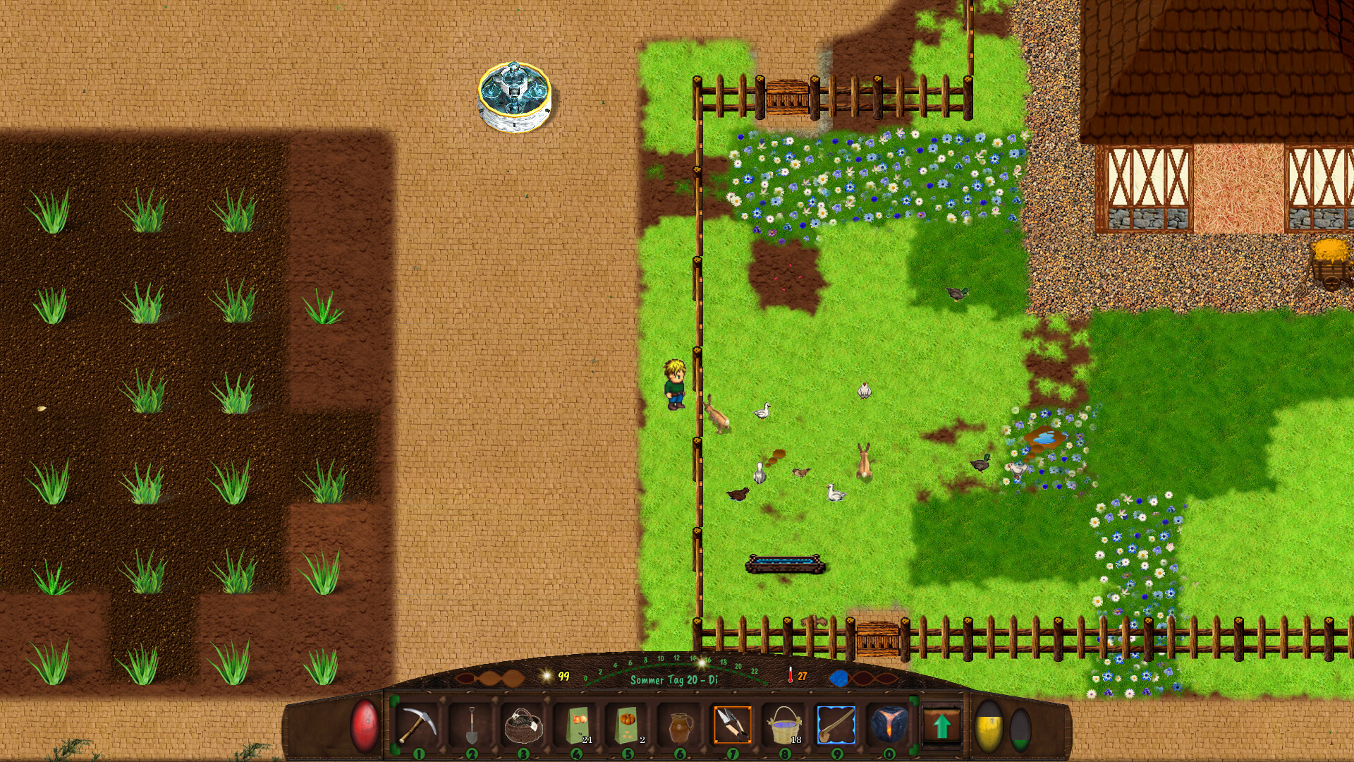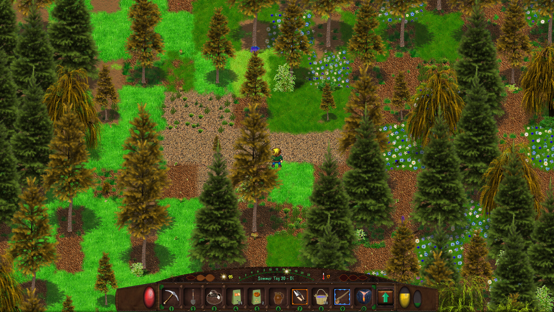 How the mix between Farming / RPG / Exploring Caves and Housing looks like is up to you, but it should be said that you can have a lot of variety. Just wandering through the nature after a season is over, is always exciting. To see what has grown, what has died, how the course of the river has changed, or where the quality of the earth has improved.