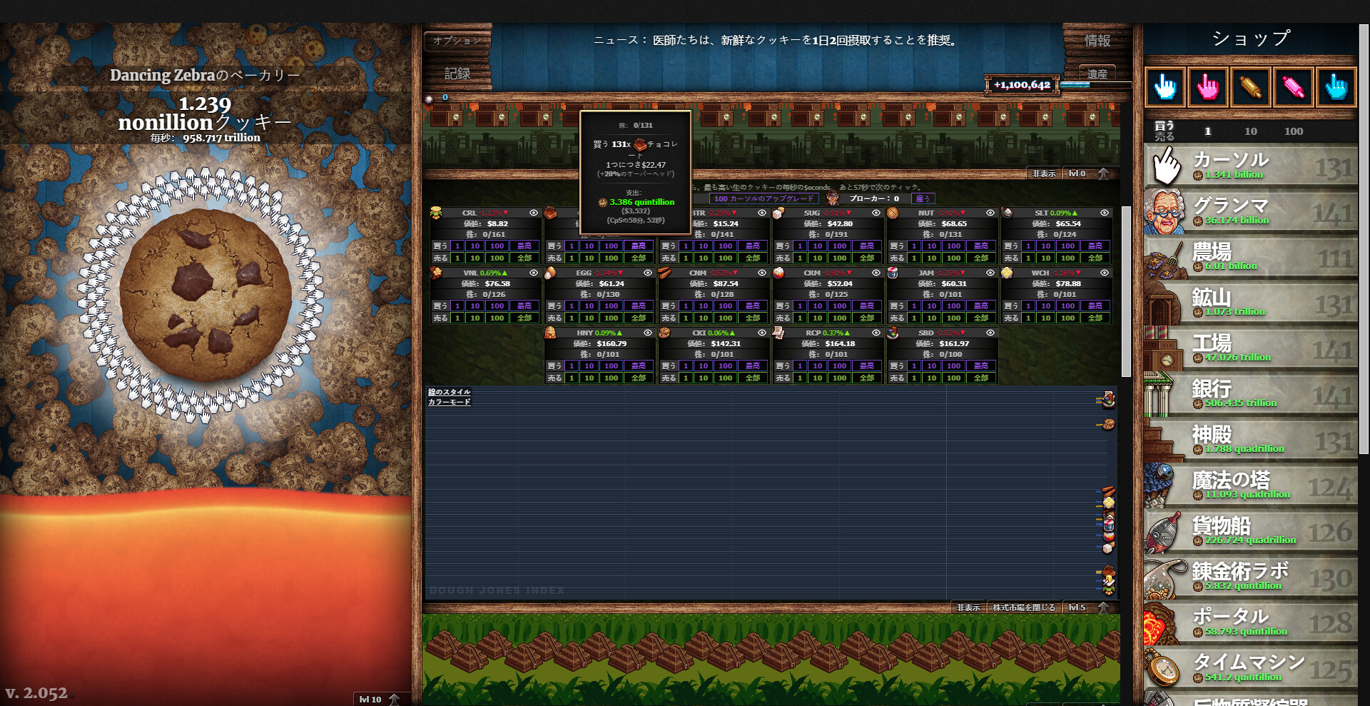 クッキークリッカーは、とんでもない量のクッキーを作るゲームです。この試みを手助けするために、フレンドリーなグランマ、農場、工場、異世界のポータルなど、さまざまな役立つクッキーメーカーを採用します。