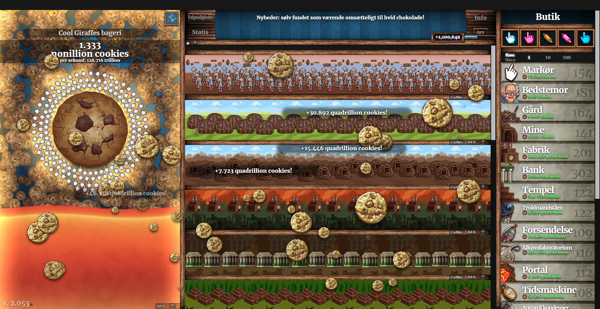 Cookie Clicker blev oprindeligt udgivet i 2013, men har været meget aktivt udviklet siden da. Hvis du har spillet det før, så prøv igen for at opleve alle de nye funktioner!