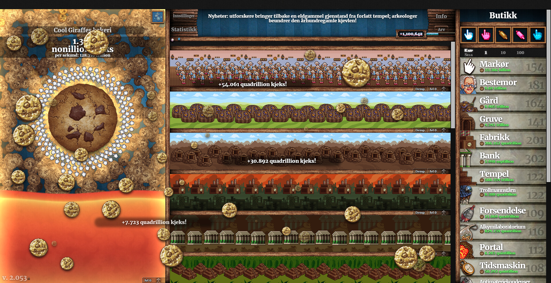 Cookie Clicker ble opprinnelig lansert i 2013, men har blitt svært aktivt utviklet siden den gang. Hvis du har spilt det før, prøv igjen for å se alle de nye funksjonene!
