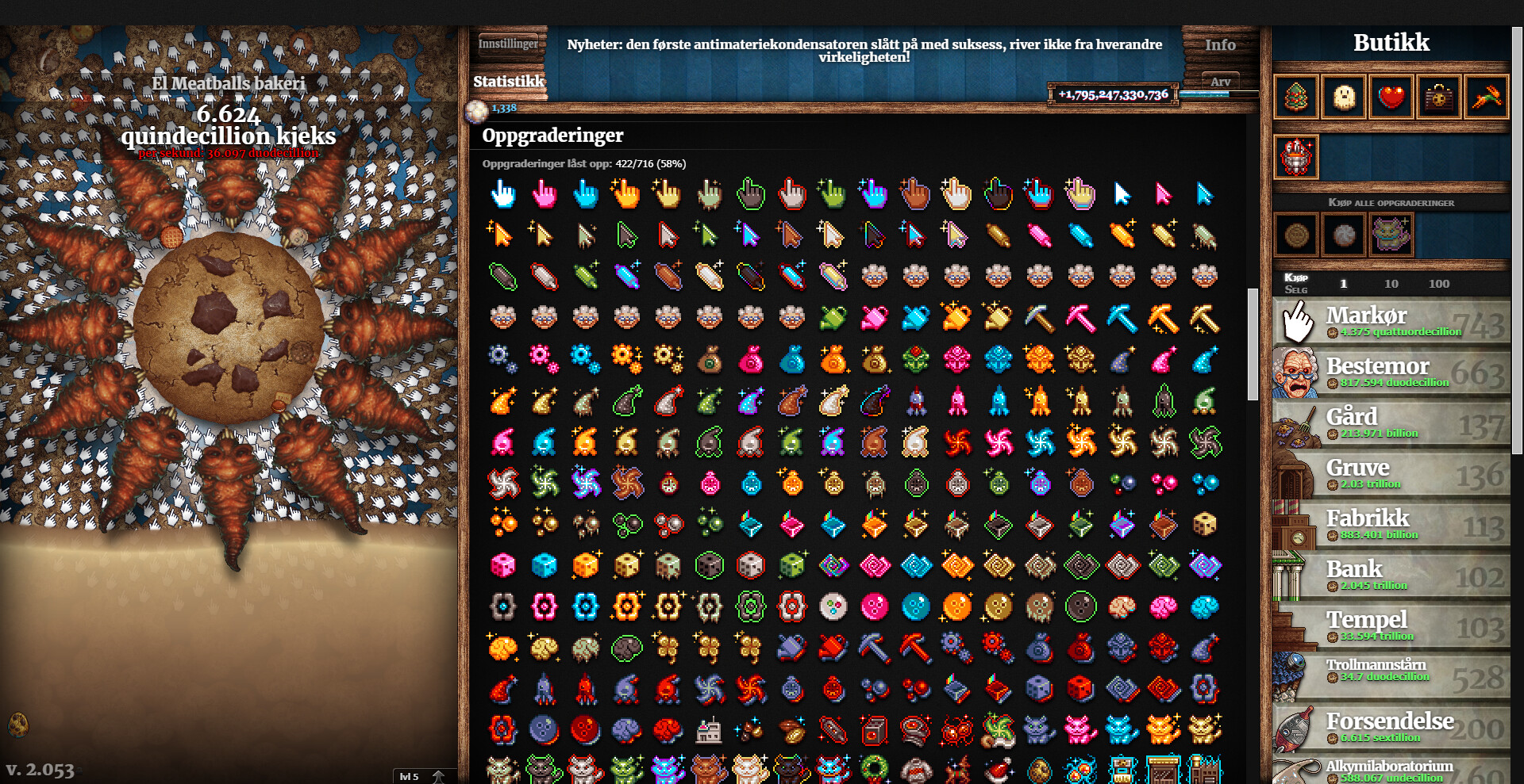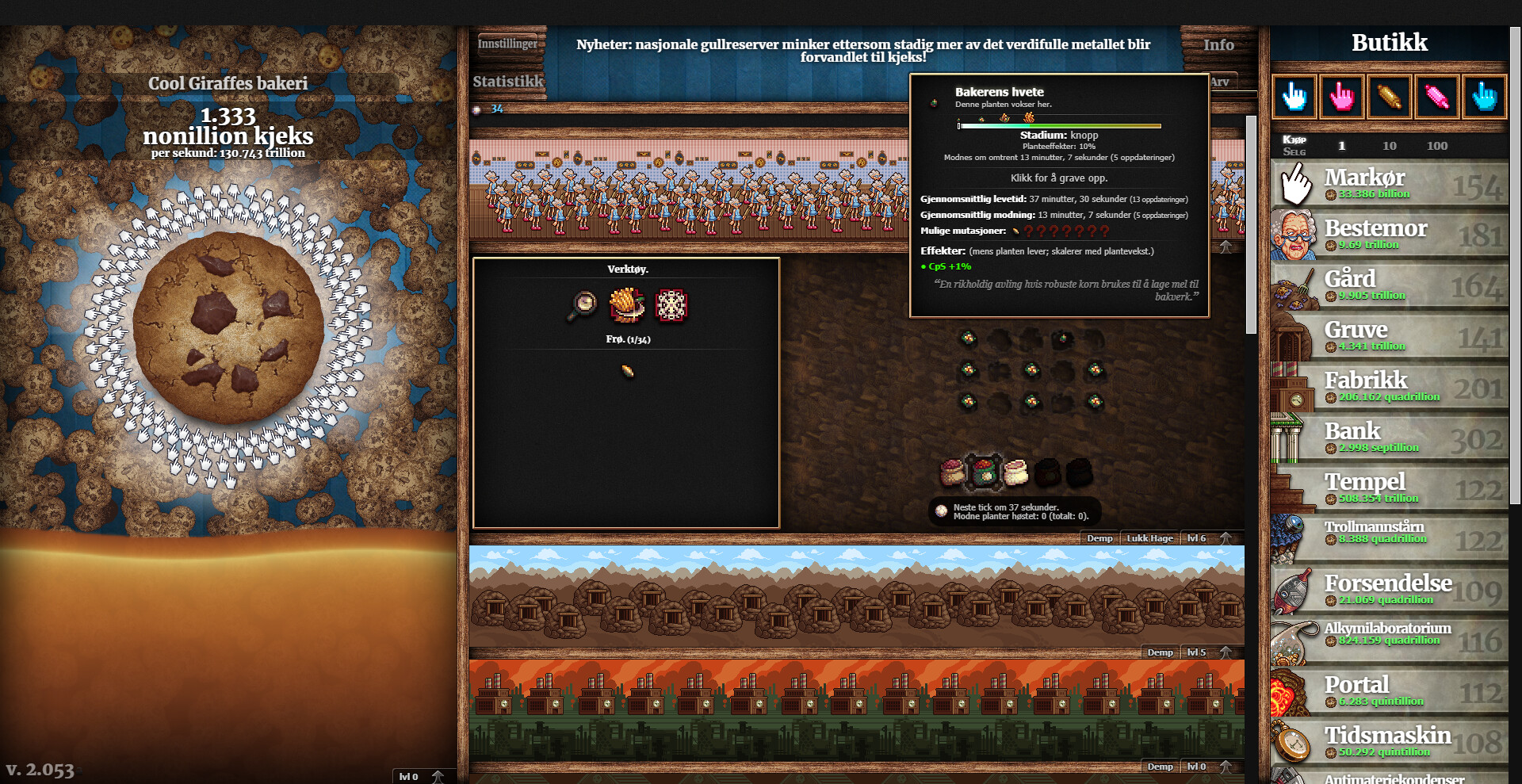 Cookie Clicker ble opprinnelig lansert i 2013, men har blitt svært aktivt utviklet siden den gang. Hvis du har spilt det før, prøv igjen for å se alle de nye funksjonene!